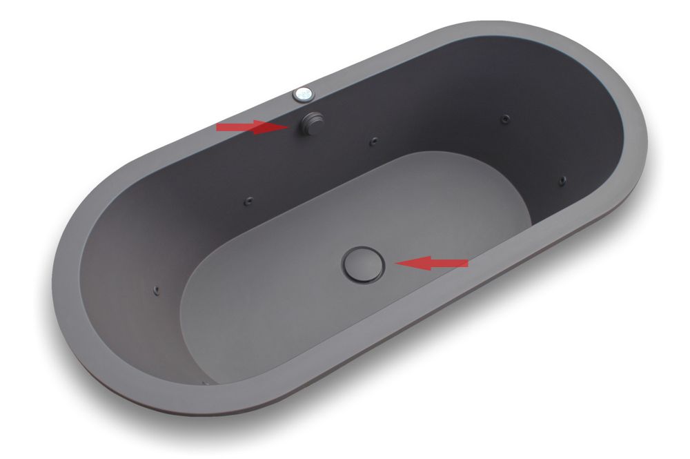 The bath waste has a handwheel and cover treated in the same colour and finish as the bathtub.