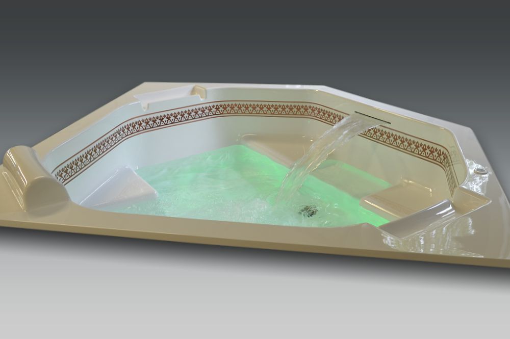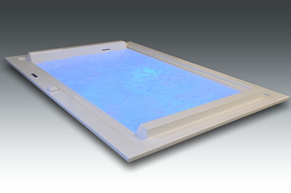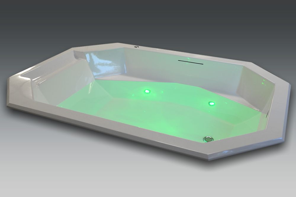 Chromotherapy spotlights are available in the colour of the bathtub, in chrome and in gold finish.