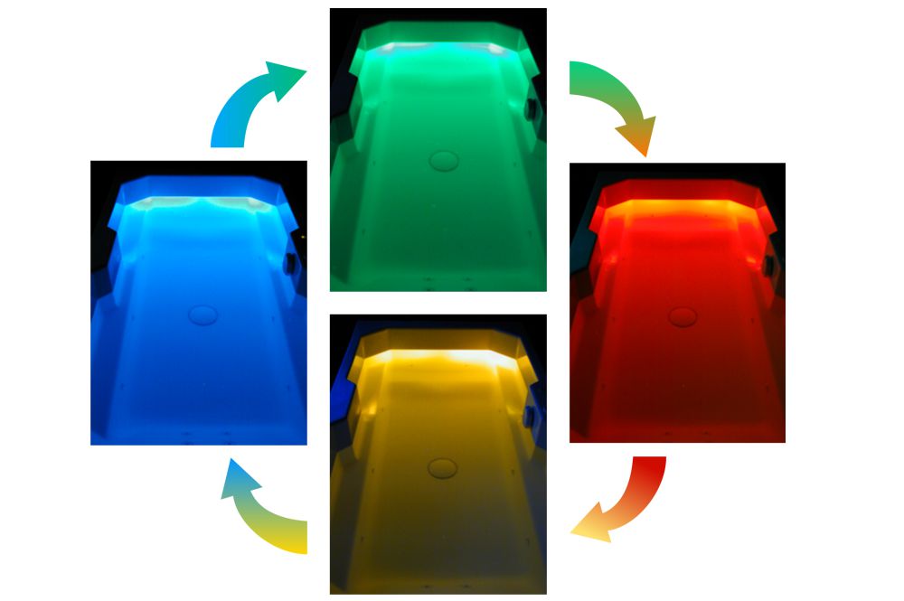 Lighting of the bath successively in red, yellow, green, blue, etc. With a smooth transition.