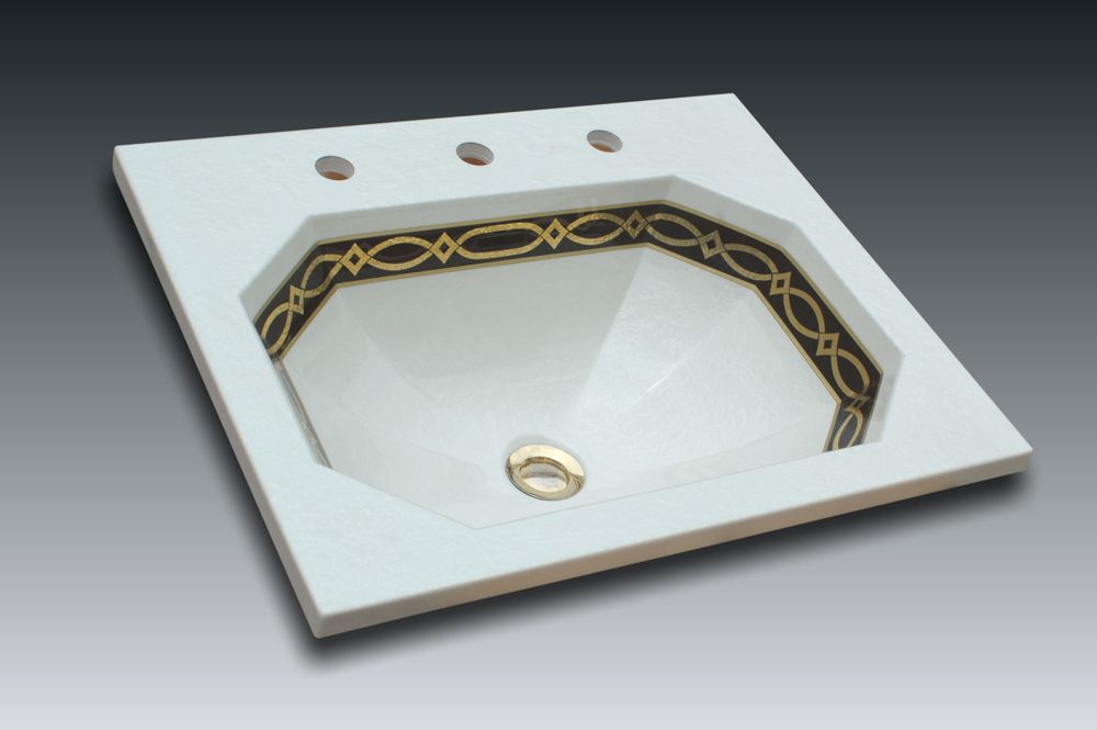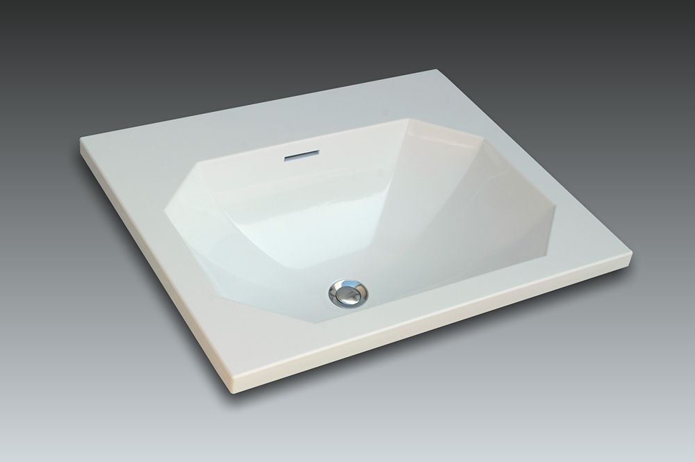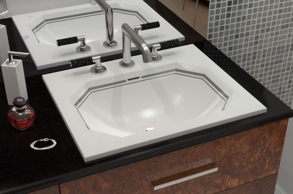 This inset washbasin blends octagonal forms with rectangular edge.