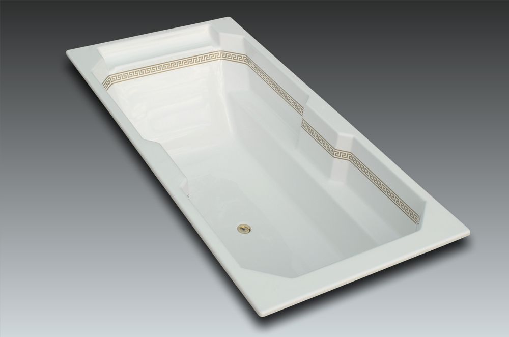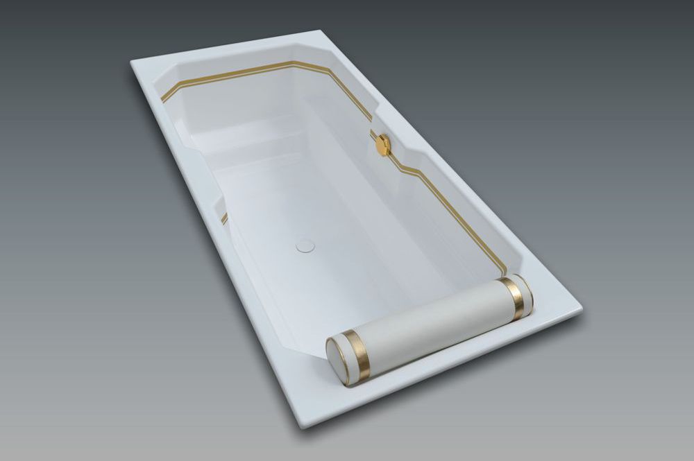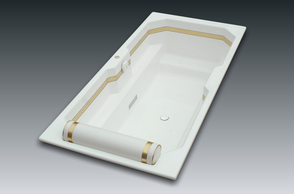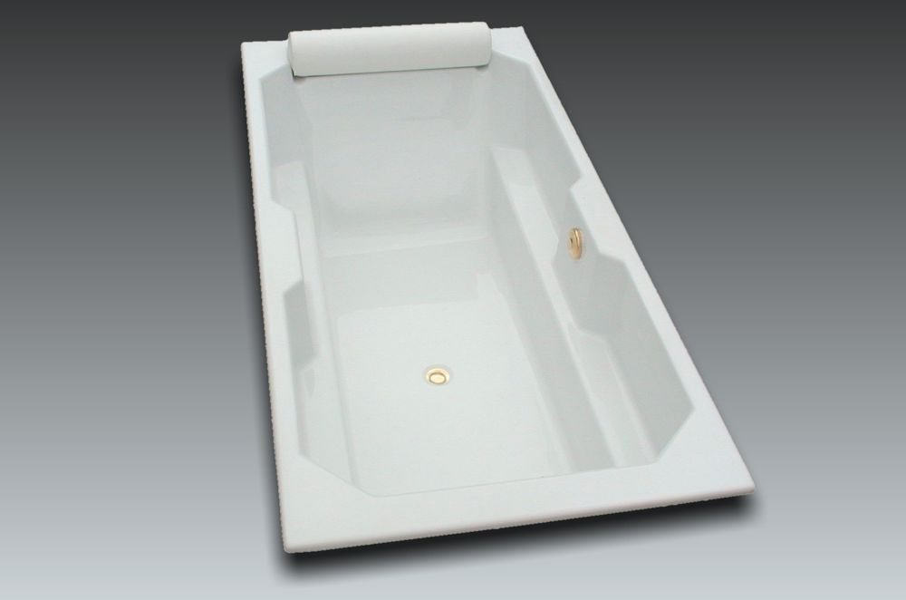 Built-in bathtub designed for over marble installation. Space provided for cylindrical headrest (optional).