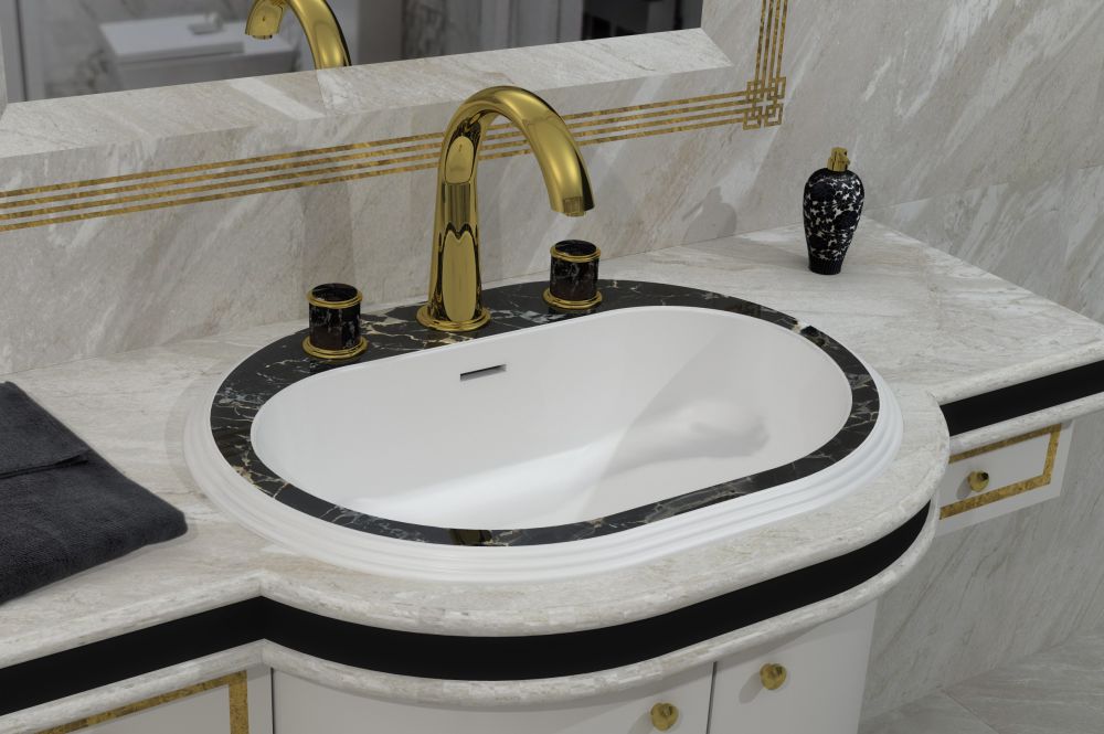 Recessed basin with overflow. Drilling on request 1 or 3 holes.