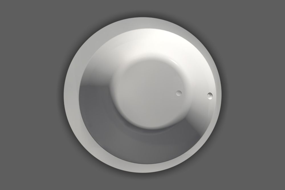 EXCEL 2 is a large luxury round bathtub actually ideal for creating a modern design space. Note the offset circular floor that flares boldly upward. Its wide edge enables installation of the faucets.