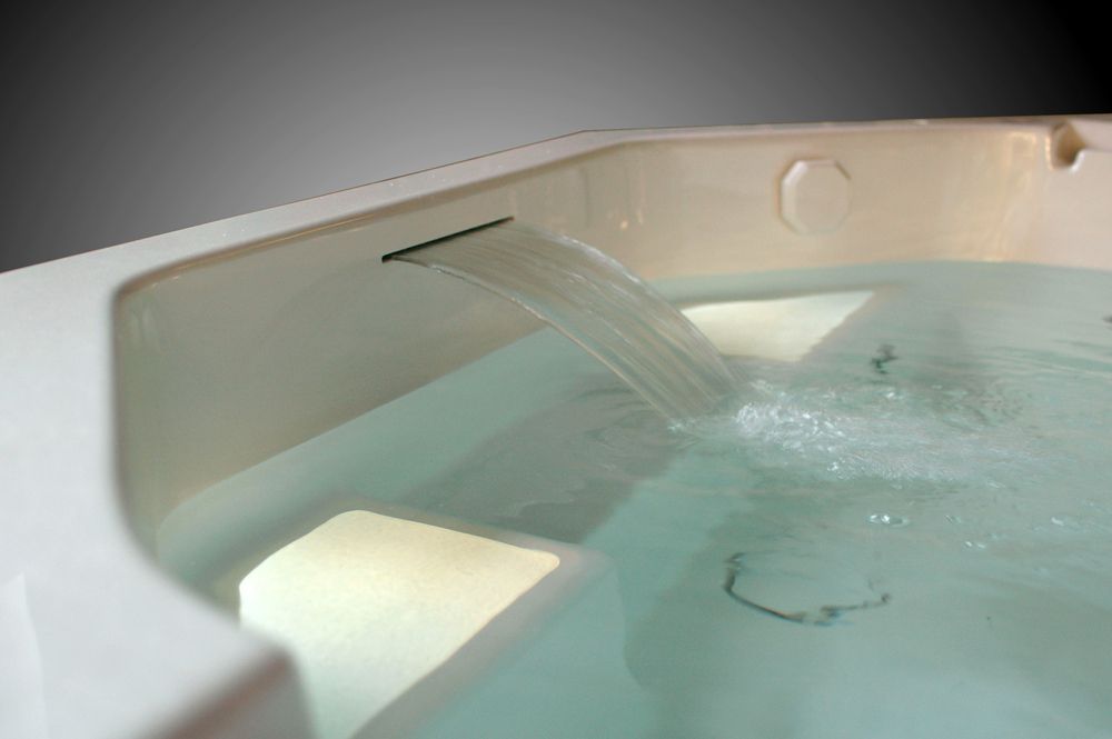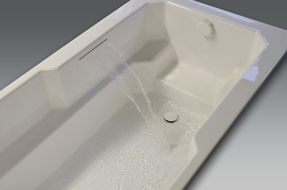 Système de remplissage du bain par lame d’eau intégrée dans la paroi de la baignoire.